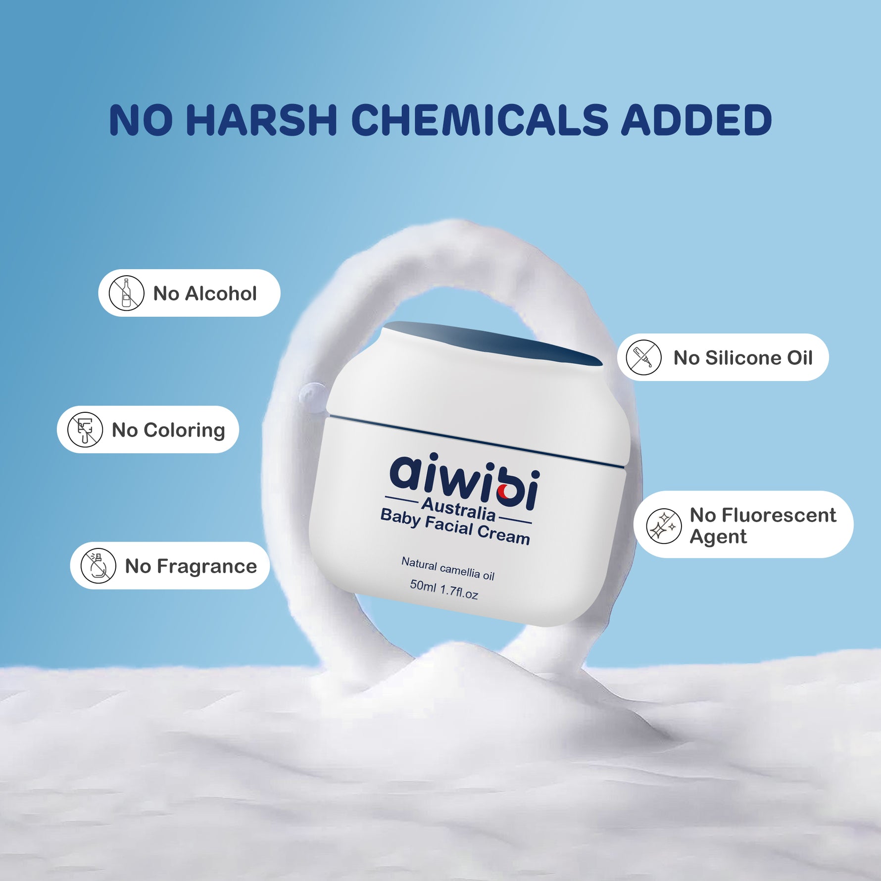 Aiwibi Baby Facial Cream features natural camellia seed oil and vitamin E, providing gentle nourishment for your baby’s delicate skin.