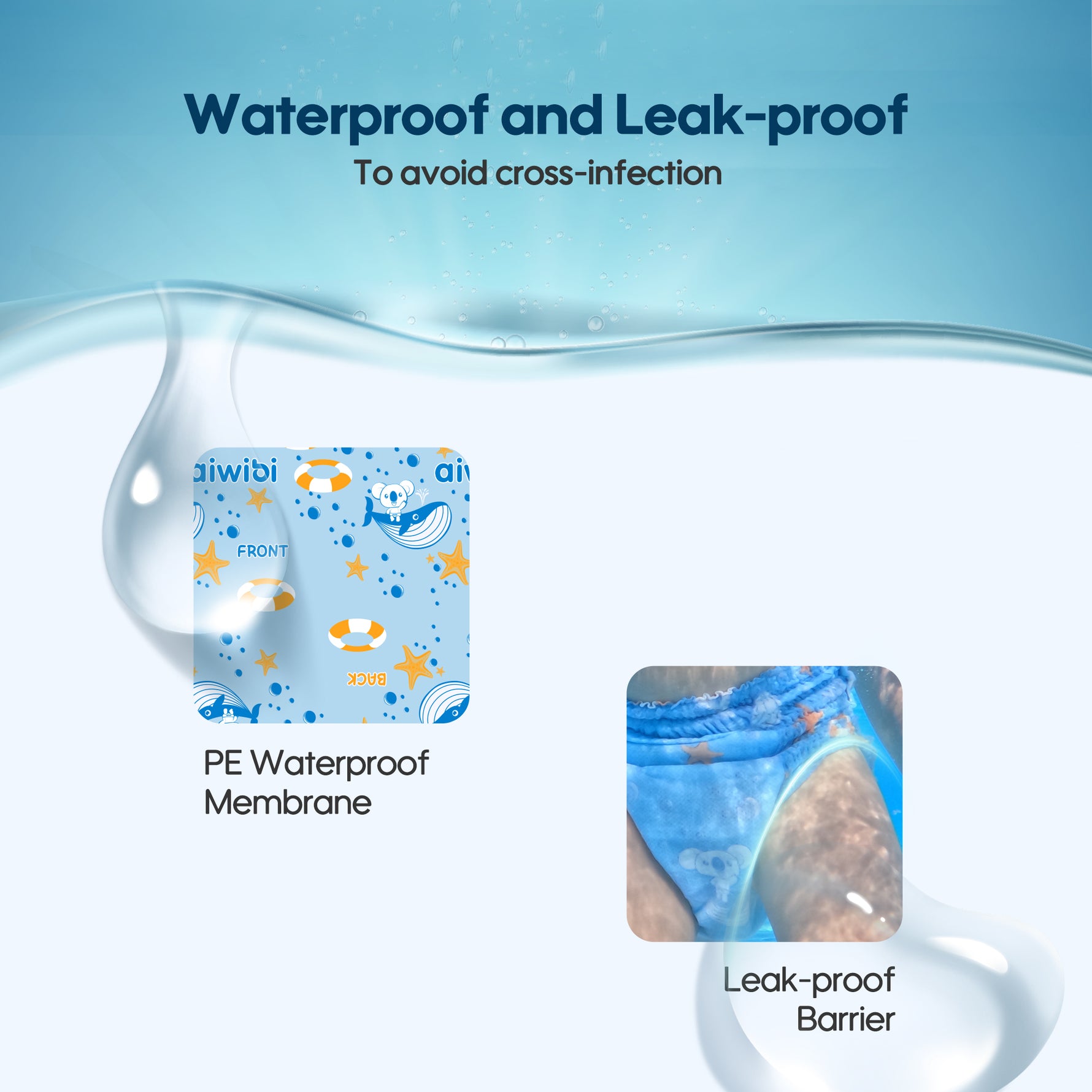 Aiwibi Baby Swimming Pants are made with a soft non-woven fabric and feature a PE waterproof film, ensuring comfort and protection during water play.