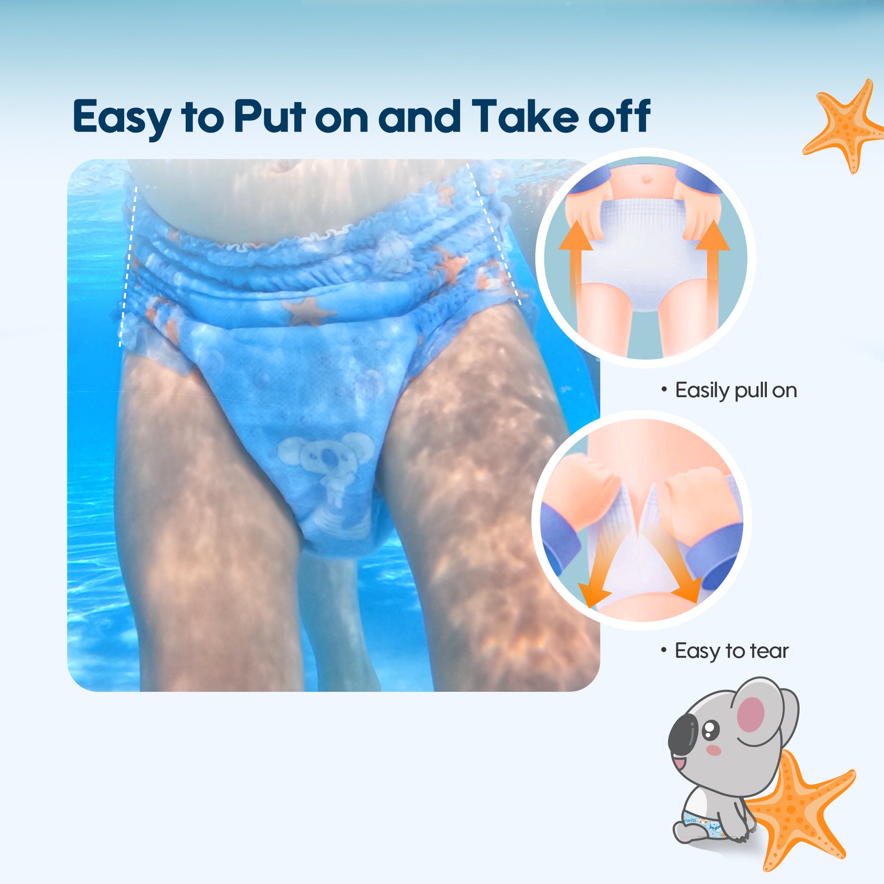 Aiwibi Baby Swimming Pants are designed for convenience. They're easy to put on and take off, making diaper changes quick and hassle-free, even during playtime.