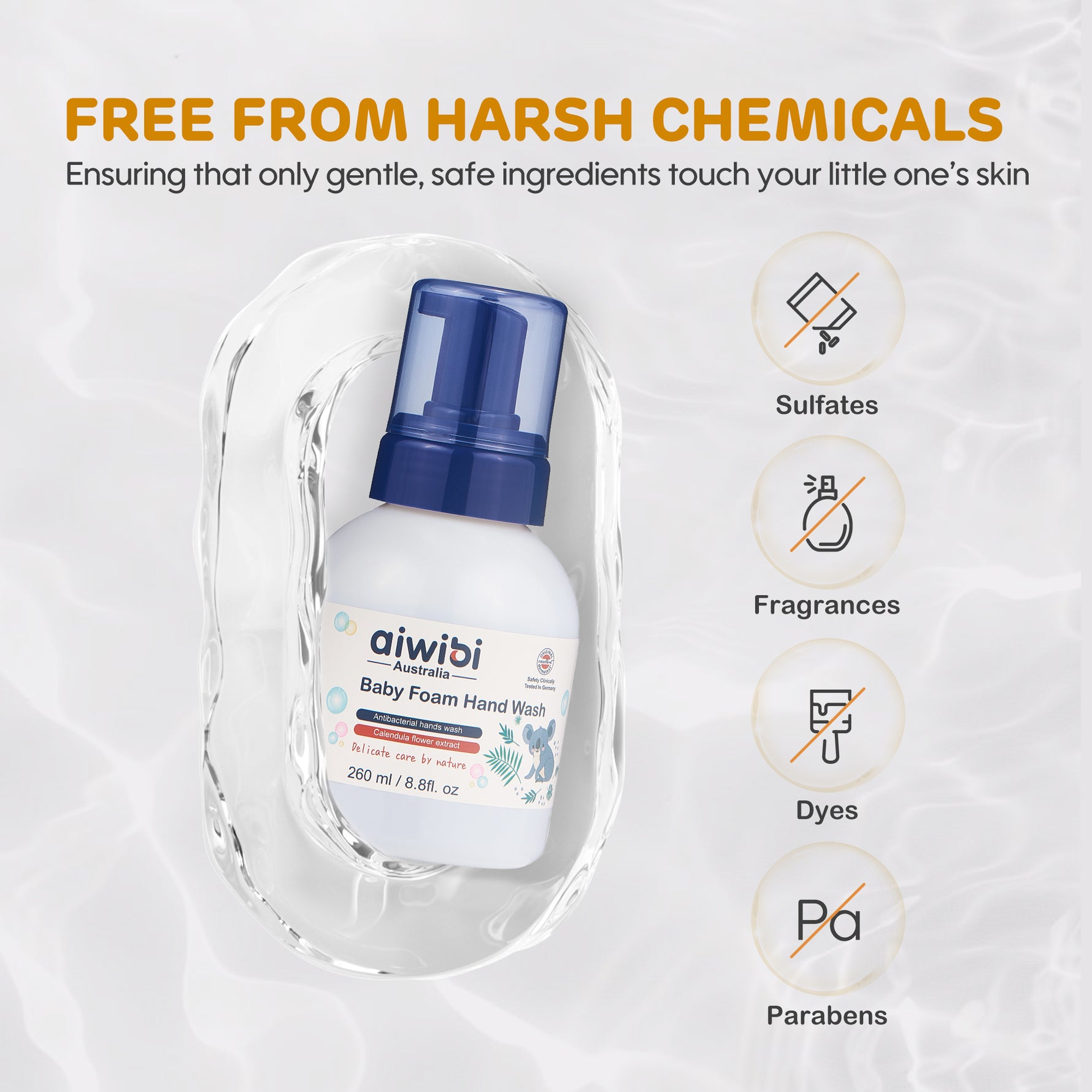 Absolutely! Aiwibi Baby Foam Hand Wash is designed to be soft on sensitive skin, free from harsh chemicals, parabens, detergents, and foaming agents, ensuring a gentle cleansing experience.
