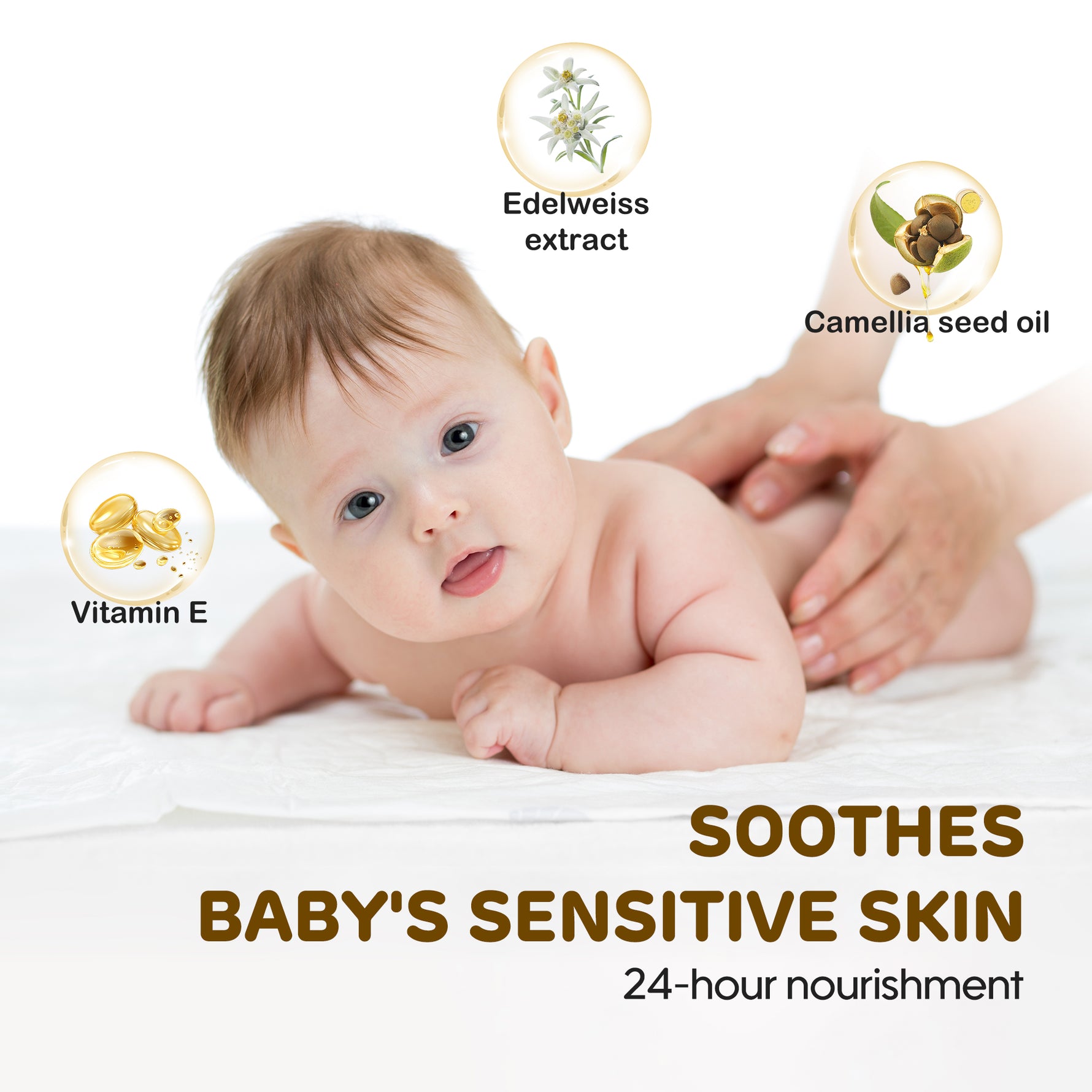 Aiwibi Baby Body Lotion is enriched with natural ingredients like Vitamin E and camellia seed oil, providing gentle and effective nourishment for your baby’s skin.