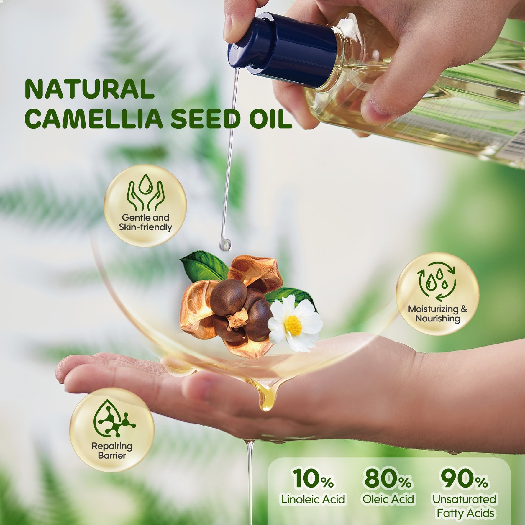 Rich in unsaturated fatty acids and linoleic acid, camellia seed oil closely resembles the skin's natural sebum, providing effective barrier repair and deep nourishment for healthy skin.