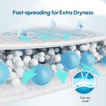 Exclusive MicroAiry Film™, designed with billions of ultra-fine micro-pores. This breathable PE film allows air to flow freely while preventing water from passing through, increasing breathability by 50%.