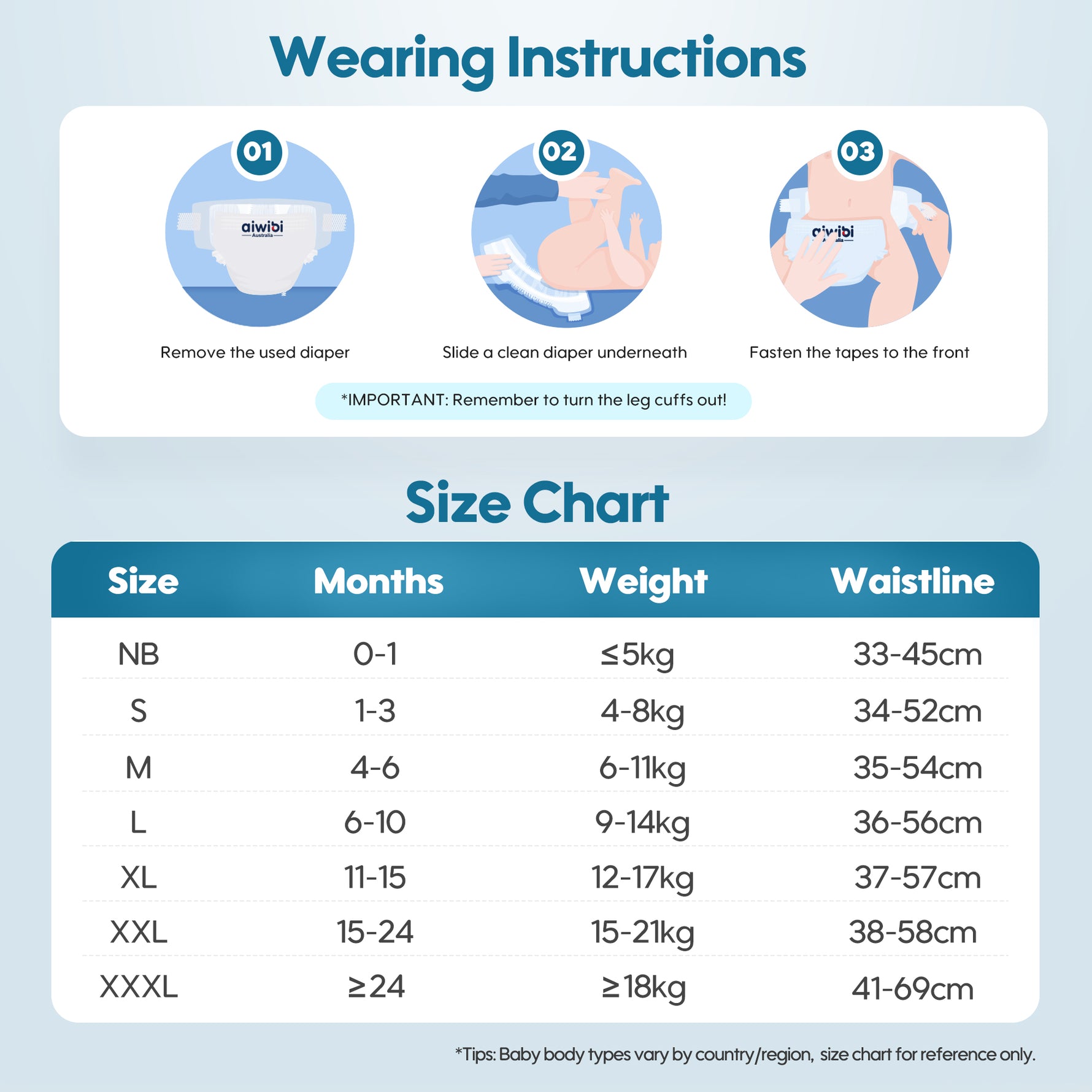 As for the difference between boys and girls, traditionally, the absorbent core in boy's diapers is placed more towards the front, and for girls, it's placed more towards the back. However, Aiwibi diapers are designed to work well for both boys and girls thanks to our product adjustments during development.